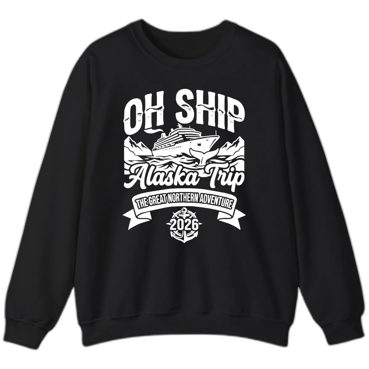 Gear up for your "Off Ship Alaska Trip" with this cozy and cool sweatshirt, designed for "The Great Northern Adventure 2026"! Featuring our iconic vintage badge artwork – complete with a cruise ship, Alaskan mountains, a whale tail, and ocean waves – this sweatshirt is your perfect companion for chilly Alaskan days and nights. Celebrate your 2026 expedition in ultimate comfort and style.