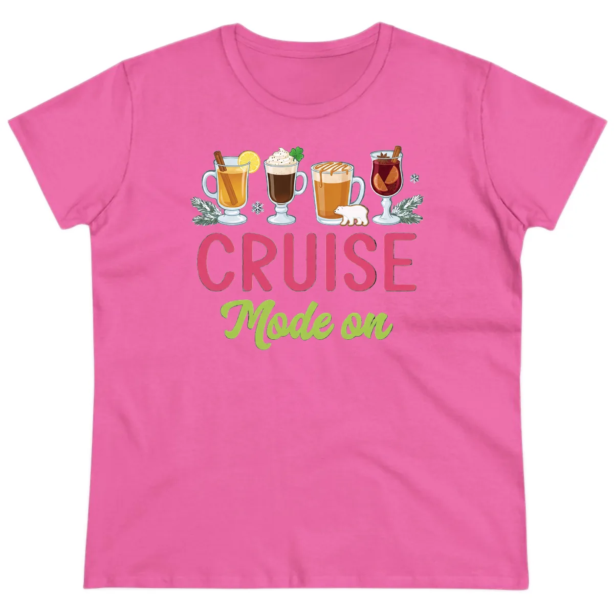 Does the 'CRUISE Mode On' holiday drinks design look good on this ladies' cut?