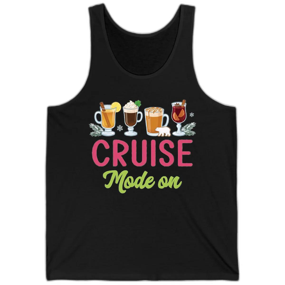 Soak up the sun and the good vibes with this breezy tank top! Perfect for warmer days onboard or hitting the ports, the 'Cruise Mode On' design featuring a delightful array of holiday drinks is your ultimate vacation essential. It’s the perfect blend of fun, festive flair, and effortless comfort for your Alaska cruise.
