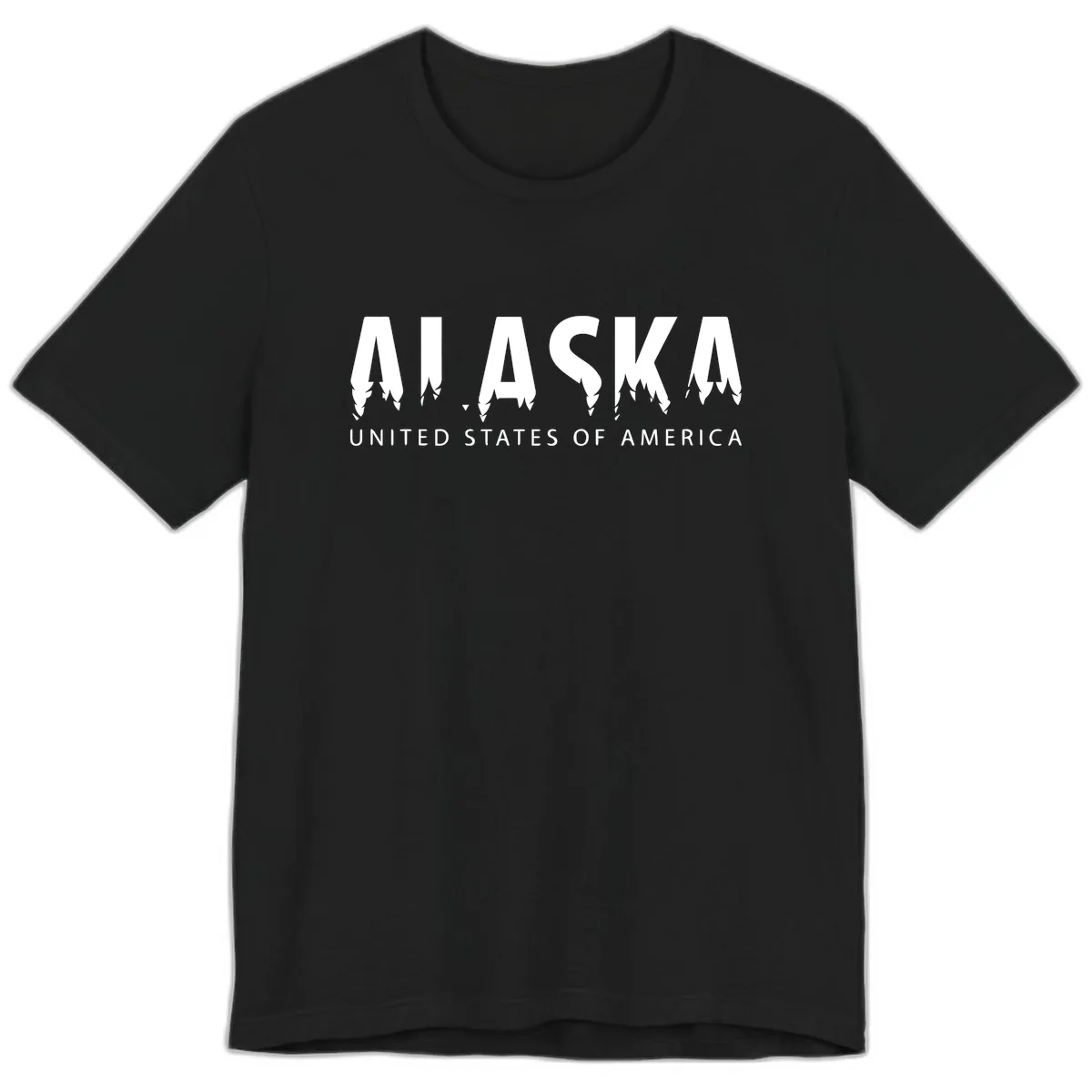 Elevate your cruise wardrobe with our premium Alaska map design tee. This shirt boldly displays 'ALASKA' with pine tree silhouettes woven into the letters, accented by 'UNITED STATES OF AMERICA.' It’s a sophisticated fusion of geographic art and natural beauty, designed for those who appreciate quality and distinctive style on their Alaskan voyage.