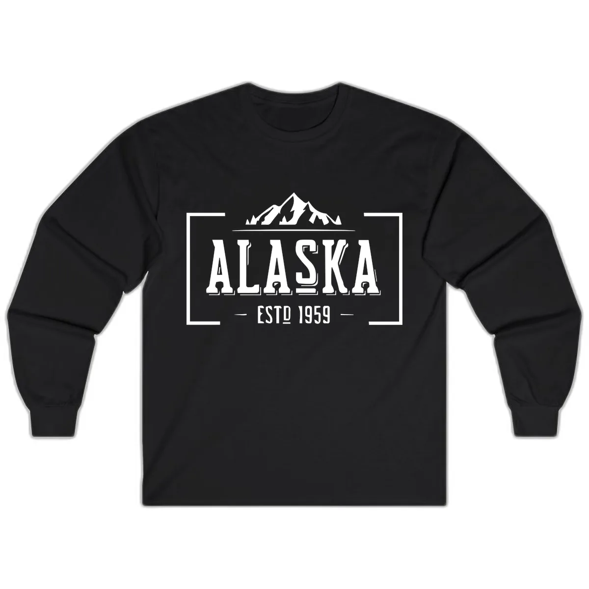 The Alaska Mountain Vintage Badge design looks striking on the long sleeves, offering a full display of the mountains, trees, and 'ALASKA ESTD 1959' text. It maintains its classic, heritage appeal.