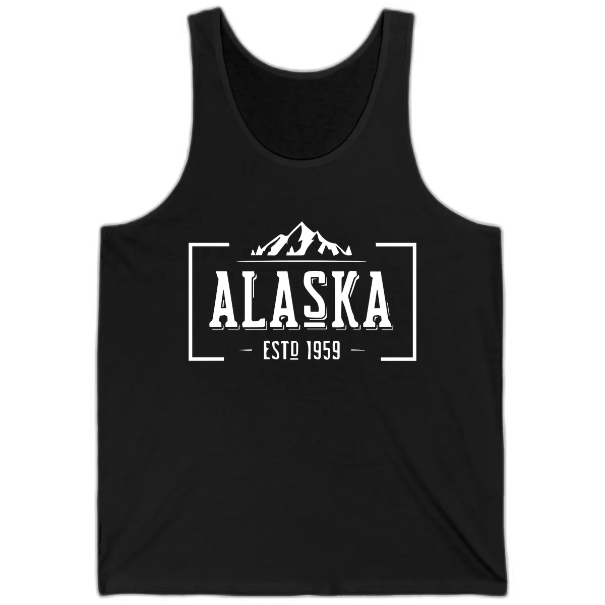 The Alaska Mountain Vintage Badge design looks sharp and adventurous on this tank top. The iconic mountain range and 'ALASKA ESTD 1959' text make a great visual statement for a casual, cruise-ready look.