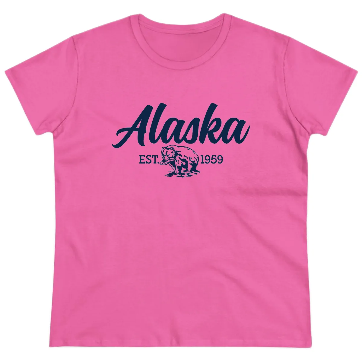Ladies, get ready to explore Alaska in style and comfort with the Alaskan Bear Established 1959 Ladies Tee! This design captures the spirit of adventure with a fun, vintage flair, perfect for making memories on your dream cruise. It's the ideal blend of retro charm and feminine fit.