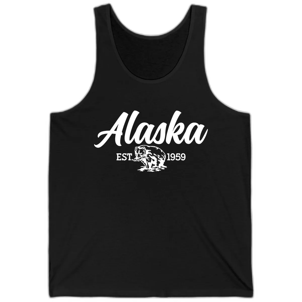 How does the vintage 'Alaskan Bear Established 1959' design look on a tank top?