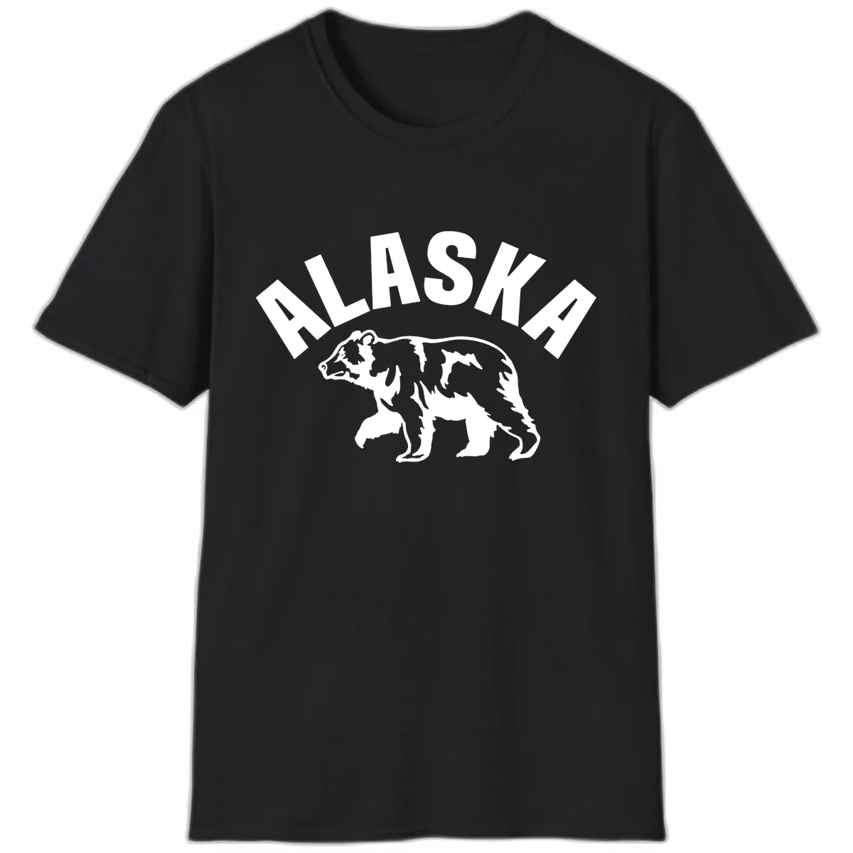 This t-shirt features a bold 'ALASKA' text paired with a striking bear silhouette, perfect for showcasing your adventure on an Alaska cruise. It's a minimalist yet powerful design that embodies the spirit of Alaskan wildlife.