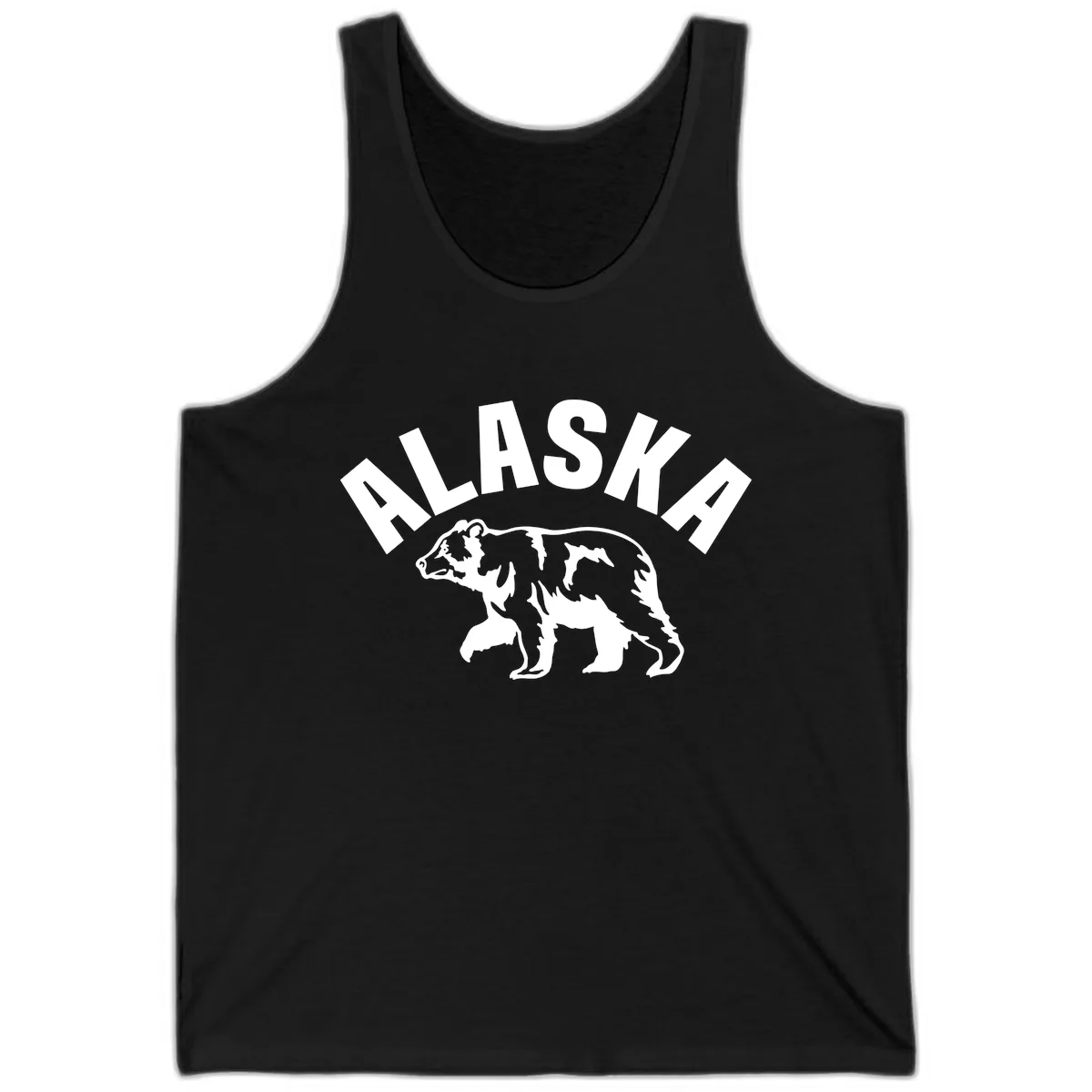 The bold 'ALASKA' text and bear silhouette create a striking graphic on the front of the tank. It's a great way to show your love for Alaska in a casual, breezy style.