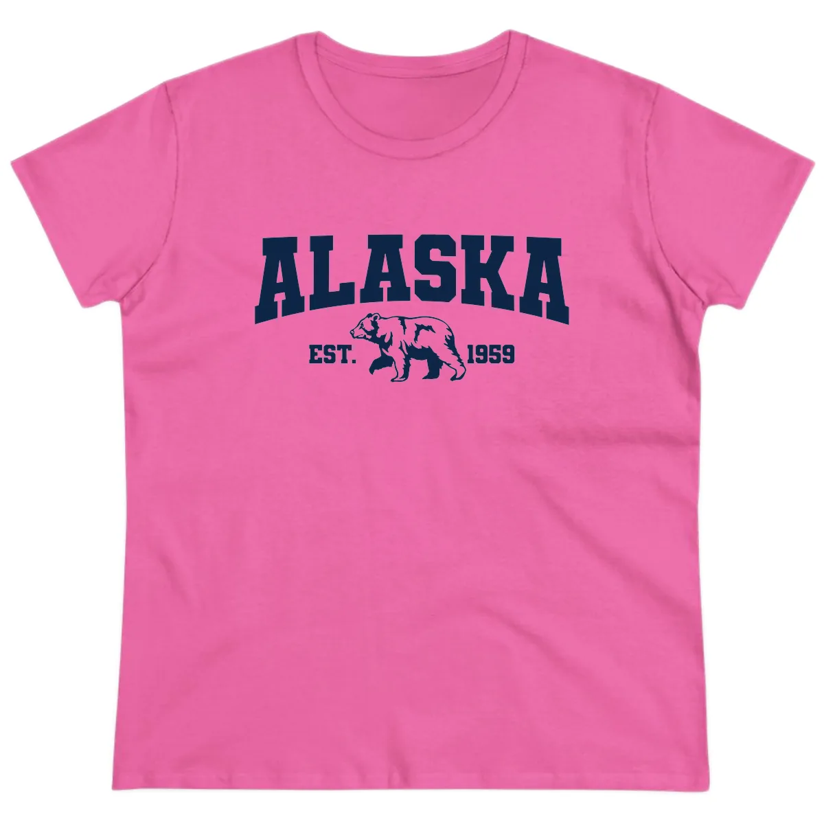 Cruise in style with the Alaska Bear Est. 1959 Ladies Cruise Tee! This design brings together the untamed spirit of Alaska with a flattering feminine fit and a classic vintage aesthetic. The detailed bear illustration and retro "EST. 1959" lettering make it a unique and memorable piece for your Alaskan adventure.