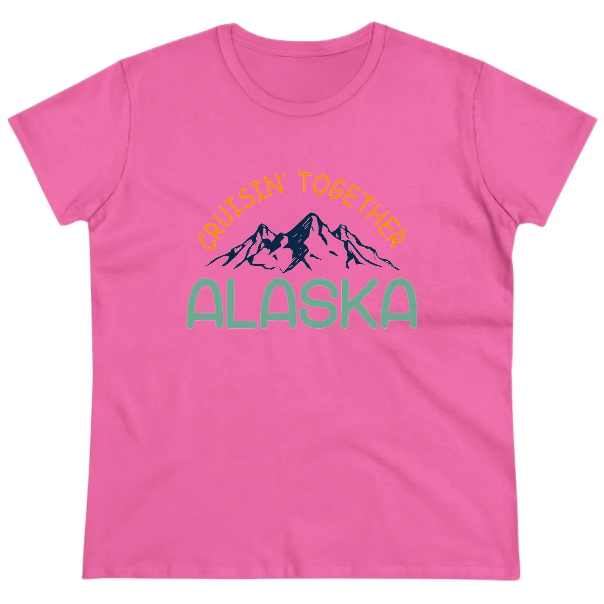 The design itself features 'CRUISIN' TOGETHER' in orange and 'ALASKA' in teal. The tee is available in various base colors for you to choose from, ensuring a look you'll love.