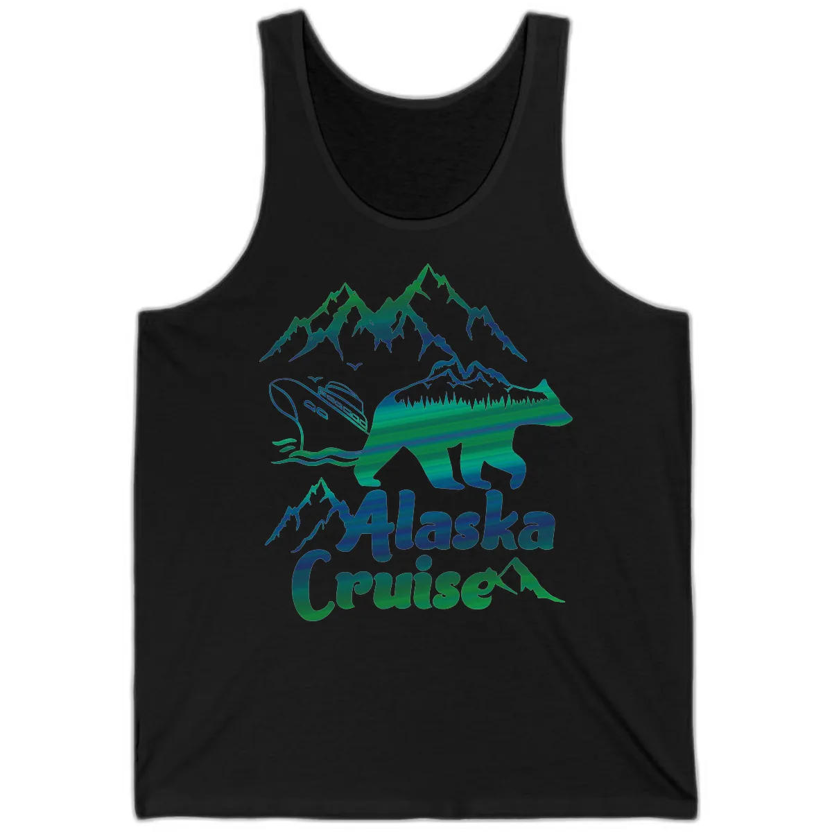 This Tank top showcases the striking double-exposure design of a bear silhouette filled with Alaskan landscapes and 'Alaska Cruise' text, perfect for staying cool in warmer cruise settings.