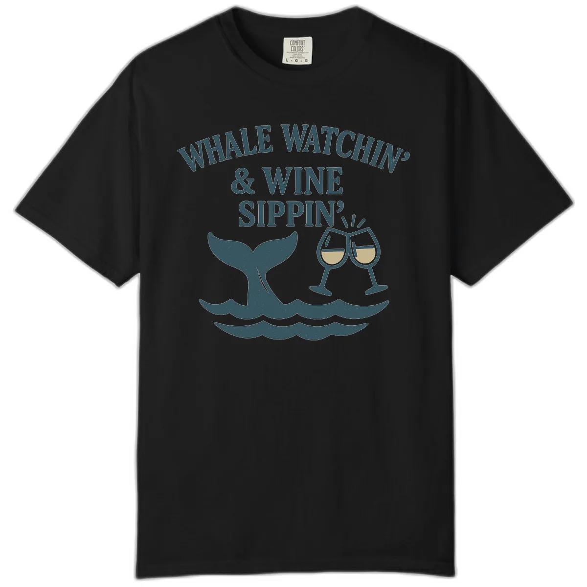 How does the 'Whale Watchin' & Wine Sippin'?' design look on the Comfort Color T-shirt?