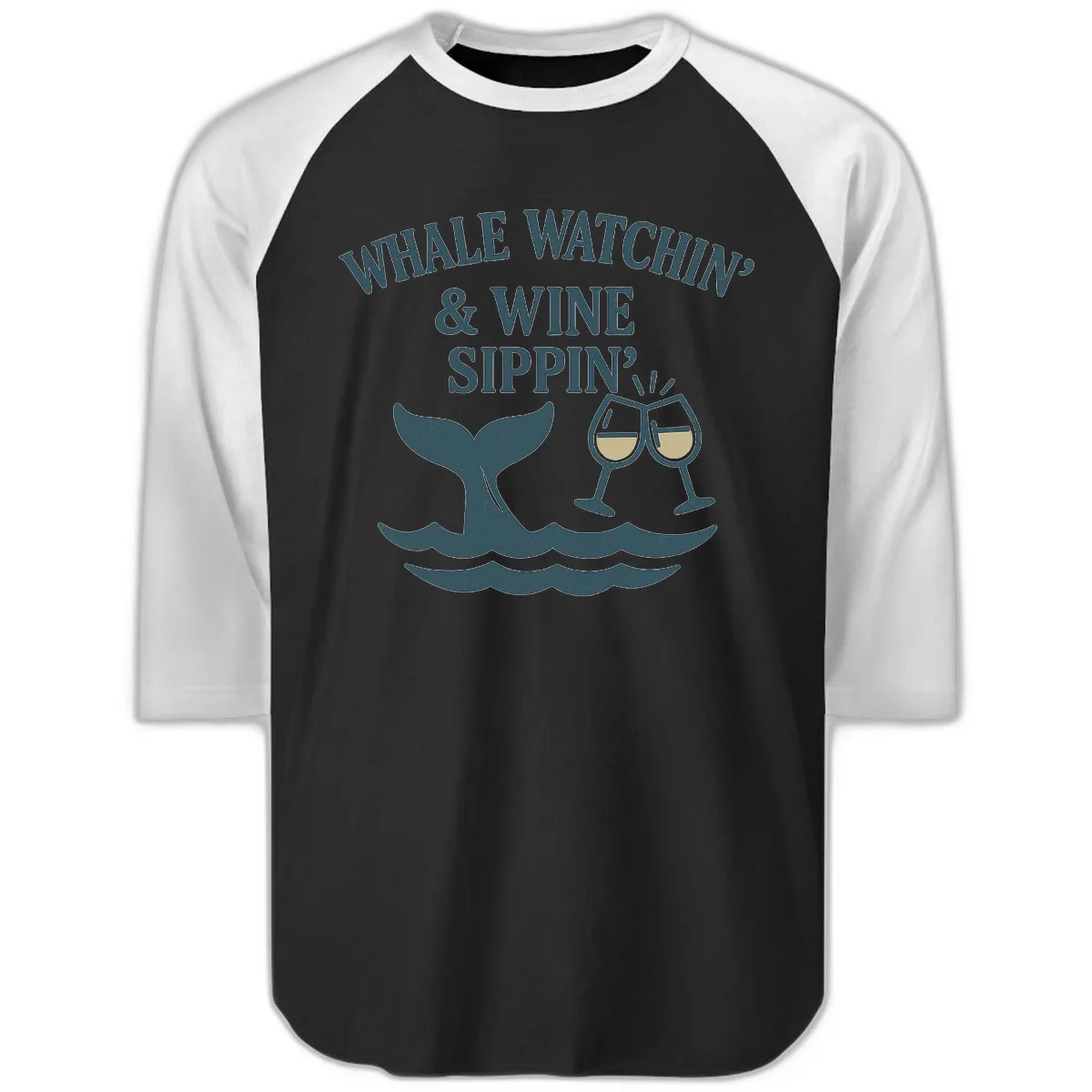 Whale Watchin' & Wine Sippin' Raglan 3/4