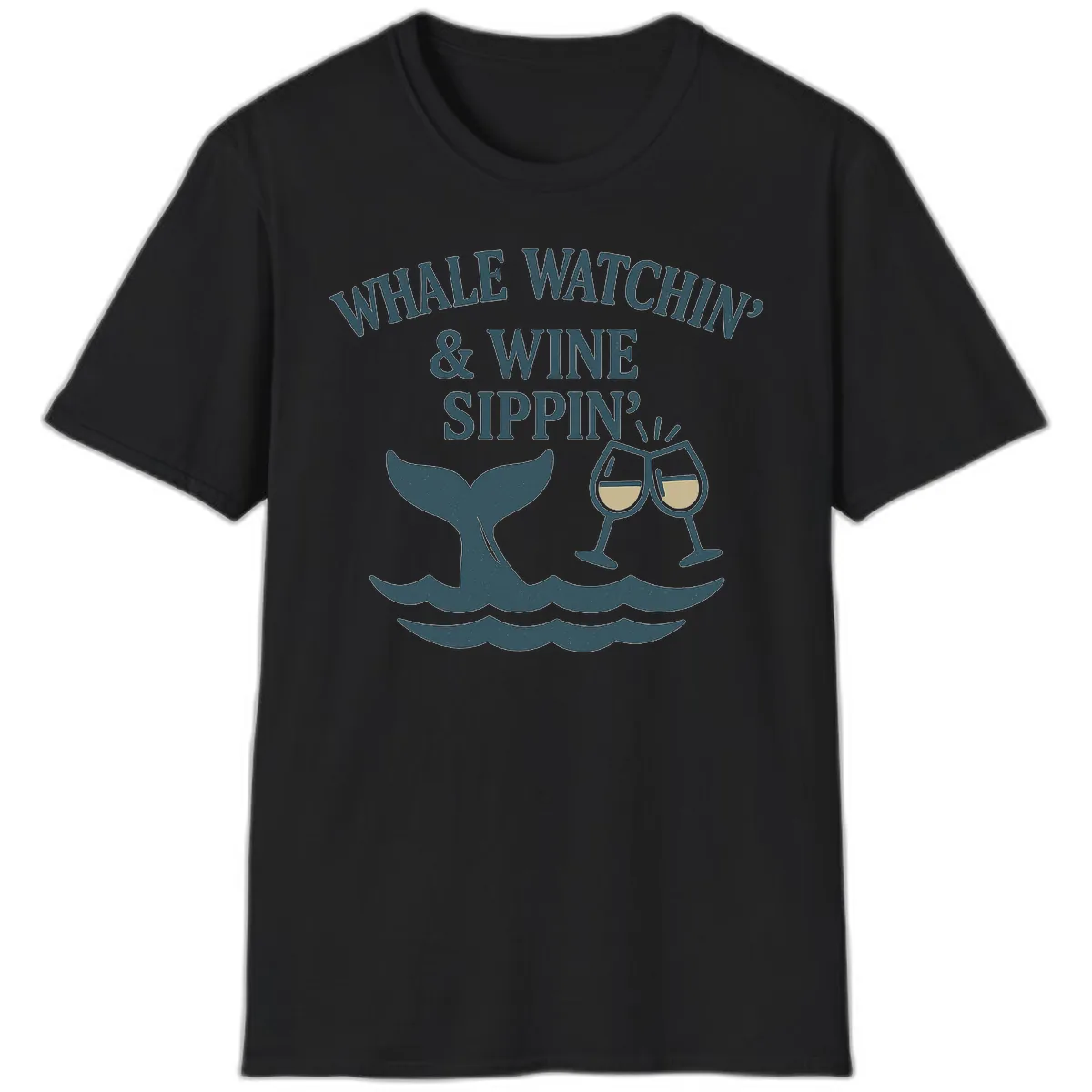 - Hilarious "Whale Watchin' & Wine Sippin'?" graphic for instant smiles.