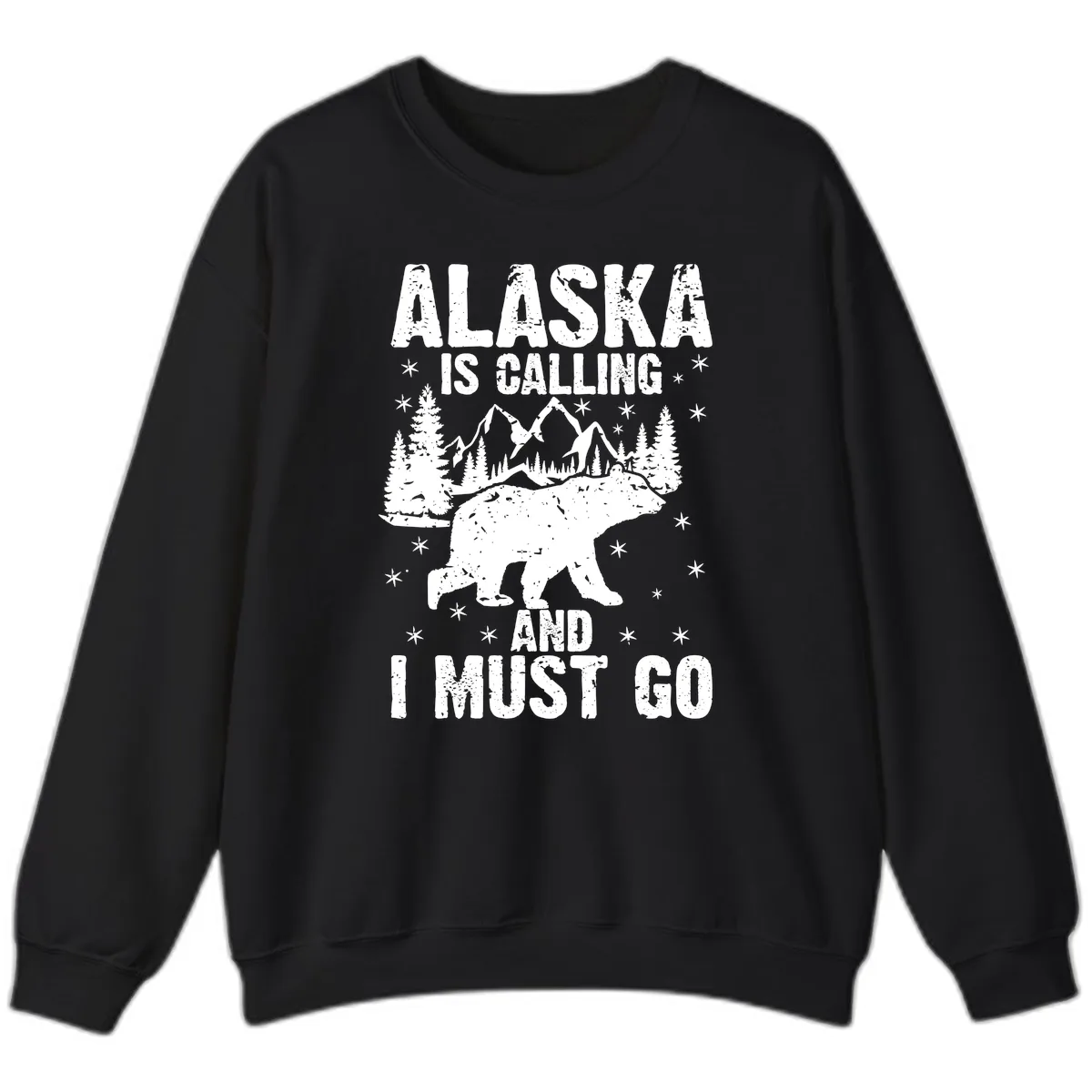 - ✓ "ALASKA IS CALLING AND I MUST GO" text in a weathered style.