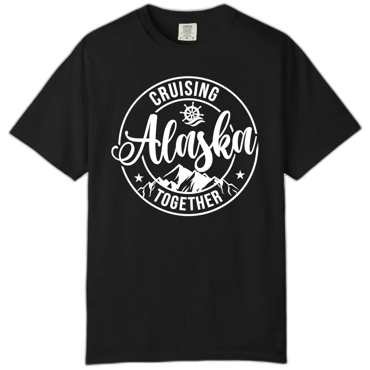 The design is printed to withstand the unique dyeing process of Comfort Colors, ensuring the 'Cruising Ashore Together Badge' graphic remains vibrant and clear throughout your cruise.