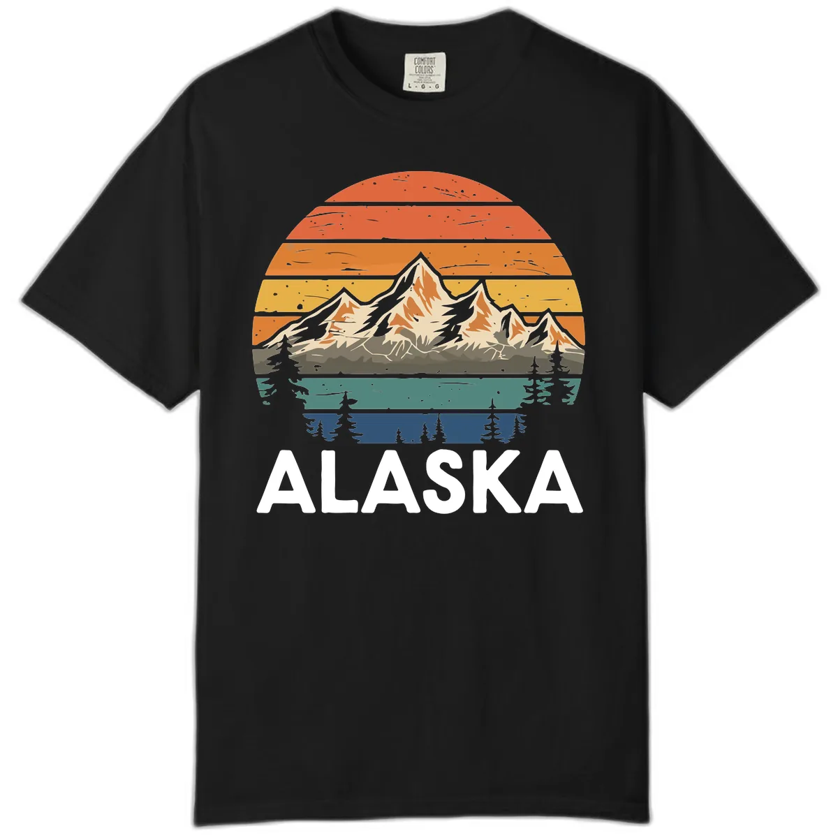 Kick back and soak in the Alaskan scenery with our Retro Mountain Sunset Landscape Comfort Color tee. This shirt features a dreamy, 70s-inspired illustration of majestic mountains against a vibrant, layered sunset sky, embraced by deep forest silhouettes. It’s the ultimate blend of vintage charm and laid-back comfort, perfect for your cruise adventures.