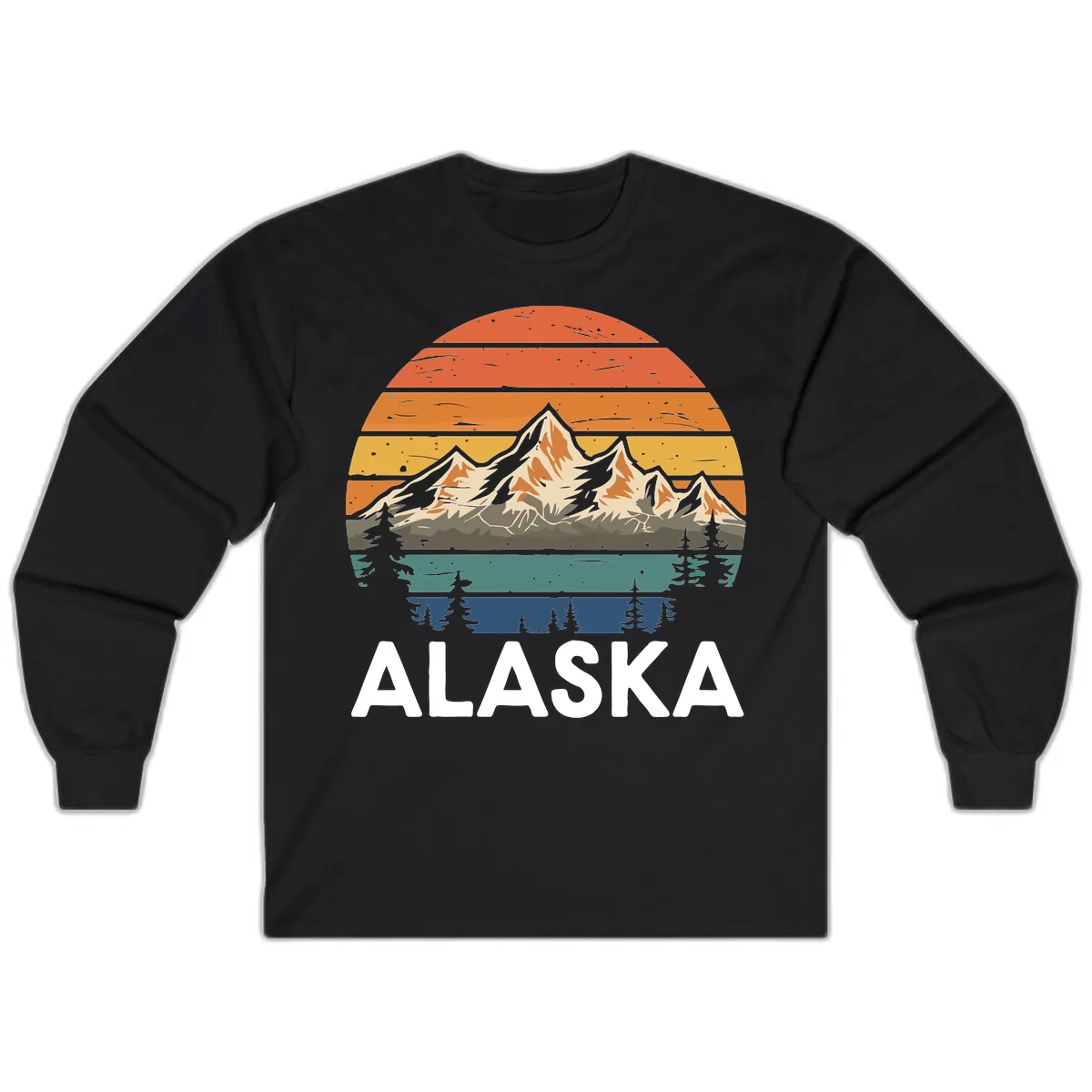 Stay comfortable and stylish on your Alaska cruise with our Retro Mountain Sunset Landscape Long Sleeve shirt. This design features a captivating vintage illustration of snow-capped mountains against a vibrant, layered sunset sky, framed by classic evergreen forests. It’s the perfect piece to capture that 1970s wanderlust and outdoor spirit.