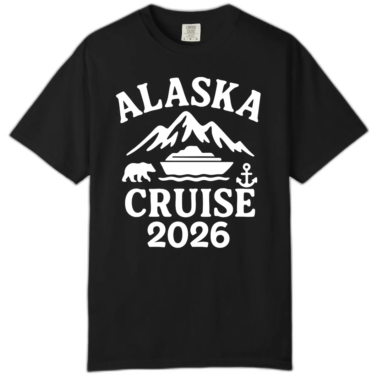 Get ready for your 2026 Alaskan voyage with our "Alaska Cruise 2026 Adventure" Comfort Color tee! This shirt features a powerful, emblematic design with "ALASKA CRUISE 2026" prominently displayed, surrounded by breathtaking Alaskan scenery: towering snow-capped mountains, a sleek cruise ship on the ocean, a majestic bear silhouette, and a sturdy anchor. It's the perfect way to capture the essence of your epic journey.