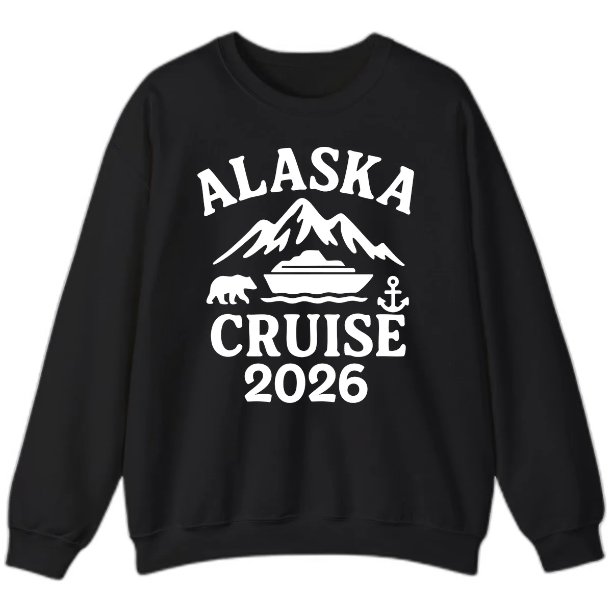 Prepare for the chill and the thrill of your 2026 Alaska cruise with our "Alaska Cruise 2026 Adventure" Sweatshirt! This cozy top features a bold, emblematic design showcasing "ALASKA CRUISE 2026" surrounded by iconic Alaskan imagery: majestic snow-capped mountains, a cruise ship on the water, a bear silhouette, and a classic anchor. It's the perfect way to stay warm while celebrating your grand adventure through the Last Frontier.