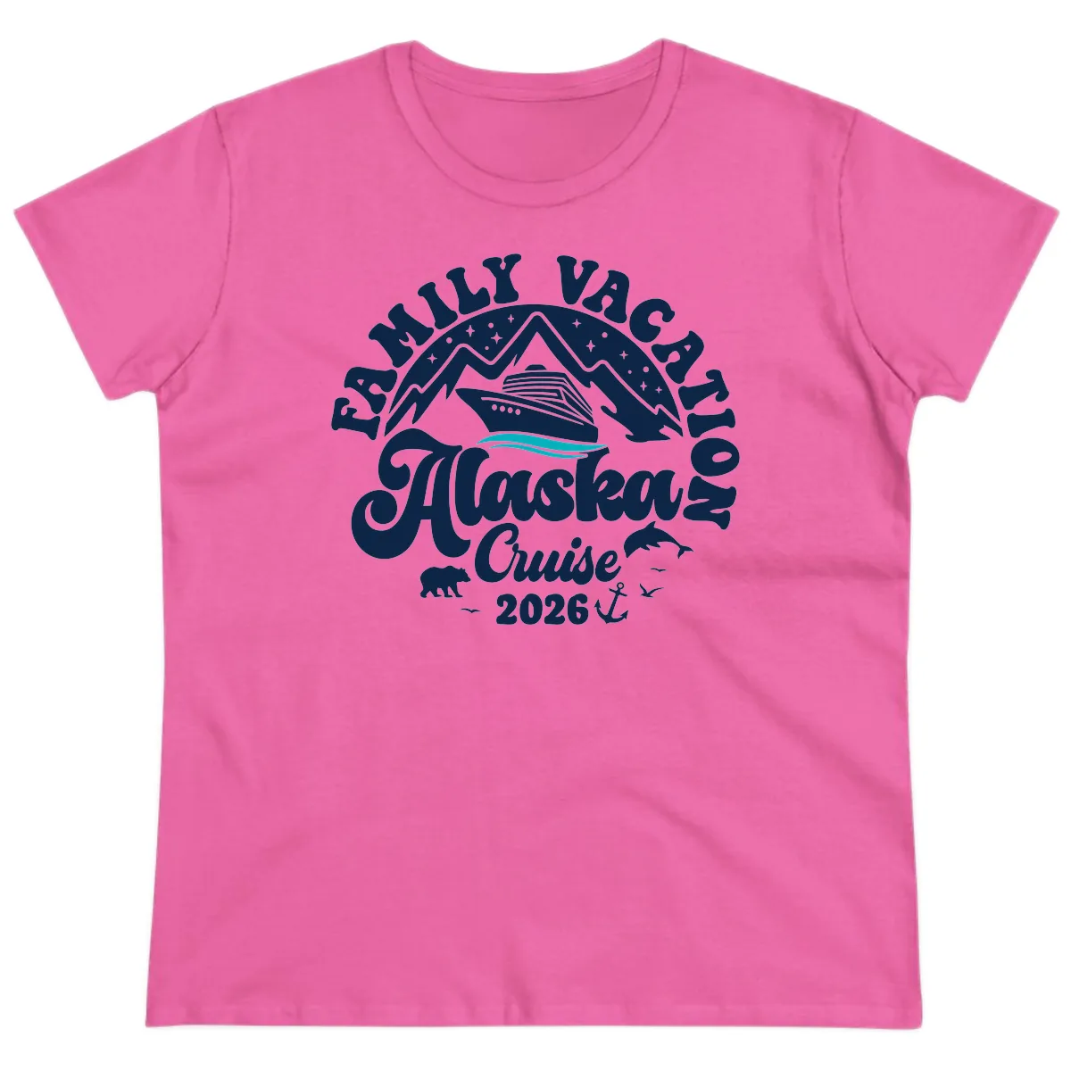 This tee is specifically designed with a flattering ladies' fit, offering a more tailored silhouette than a standard unisex shirt. It's made from soft, comfortable fabric perfect for your Alaska cruise.